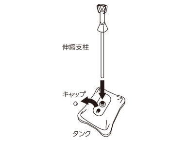 タンクのキャップを外して注水してから伸縮支柱を差し込む