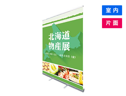 イベント会場の入り口部分や店舗キャンペーンでは、店舗内の至る所に設置するバナースタンド。軽量で動かす際もスムーズな事からセール告知や会場の盛り上げ人気の高いイベント装飾グッズとなります。丁度、目線の高さにプリントされたデザインがきますのでロードサイドからの視認性の高さも特徴の一つです。